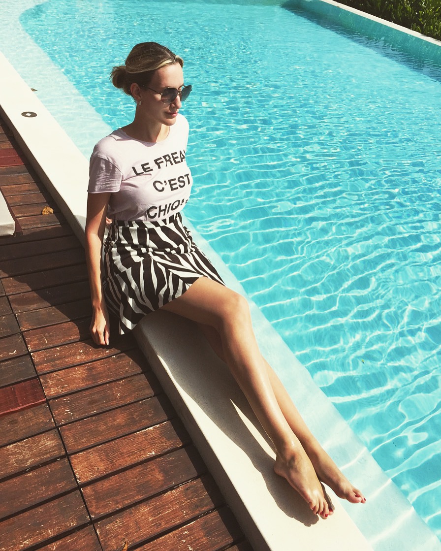 As I laid eyes upon the “Le Freak C’est Chique” bamboo cotton t-shirt at TK Maxx, I knew that this will be my “pièce de résistance” for the journey, combined with the sensational zebra pattern clash skirt. What is a better time to wear such beautiful things than lounging around a luxurious pool? I used to always go to the pool wearing a bikini and a simple thing to cover it. Well that was the ancient past. 2017 is a time to make an unforgettable statement that will make those jaws drop and heads turn. A true fashion rebel is afraid of nothing and no one!