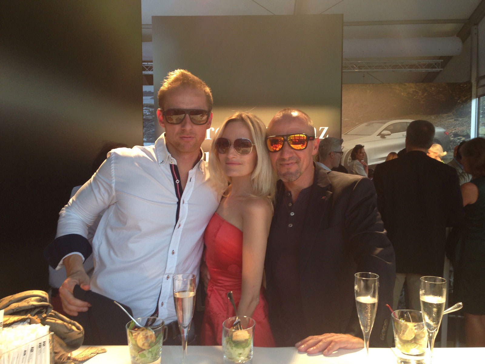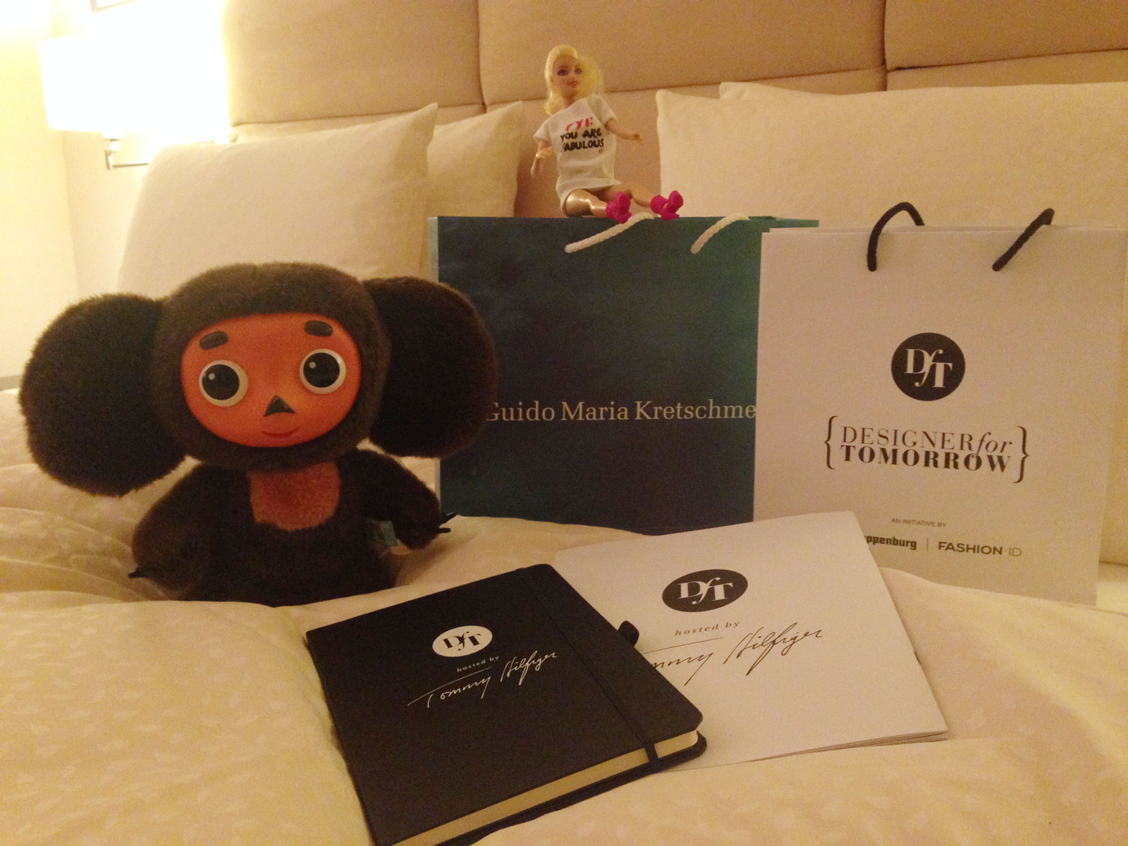 Luckily we managed to go back quickly to the Mercedes Lounge for a refill of the cold champagne before the backstage tour and the Guido Maria Kretschmer show, because the drama there outdid the previous one! We arrived at the front row, and a lady seated us in the center with the best view for the show. There was a Kretschmer Barbie on each seat for the guests to take, and a naughty man beside me said that the doll had no panties on. Dan and his friend Stan were excited too soon about the hot seats we got, because a moment after, a square-built man came up to them and said they had to leave because the seats were reserved for his client. Dan and Stan did not move anywhere. A few minutes later the client arrived, who happened to be Verona Pooth, and said they have her seats. Stan waved his hand in front of his face in an exaggerated “No” gesture. I could see that Ms. Pooth was about to express her own gesture, and before the cameras would rush in front of our Frankfurt faces, I pulled Dan and Stan up from the seats, and she shot me an appreciative friendly glance. Another accident avoided! Of course both took the Barbies with them, waving the naked plastic oysters in that direction as they were leaving! The funny thing was that our original seats were almost right across, also in the front row. The Kretschmer show was full of energy and elegance. I especially liked the last few dresses that had a glamorous rock feeling to them, which I would definitely wear for a special occasion like a Guns n’ Roses reunion concert and backstage party. Thank you Mr. Kretschmer for a wonderful collection and show!