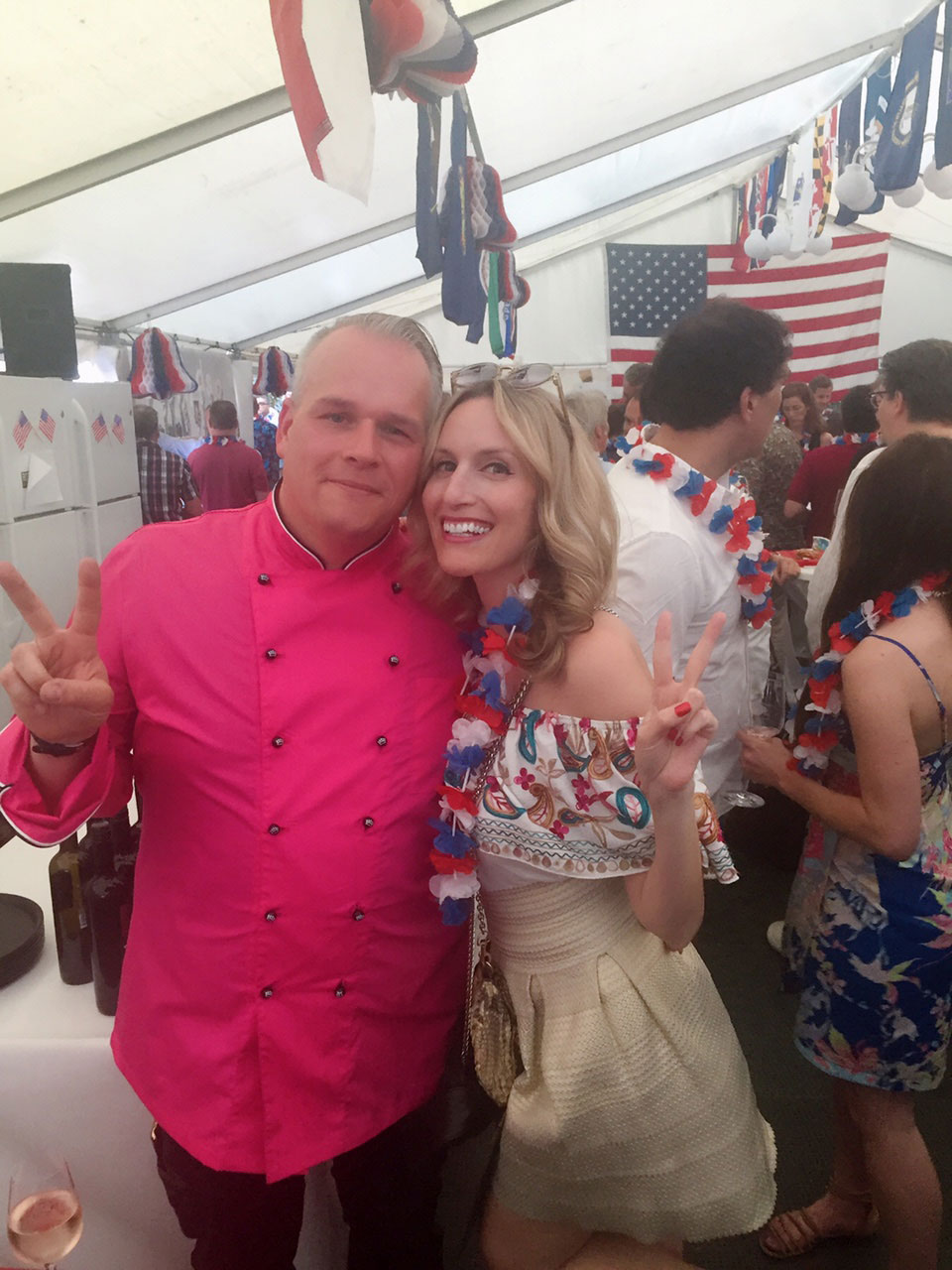 As I walked inside the garden, I saw my friend Stephan Reeg, who is the private chef of the consul general. He had a cool pink chef jacket on and the buttons had little black crowns printed on them. Now this is what I call amazing attention to detail! I’m a big lover of good food, and the foodie within me was excited beyond belief. As far at the eyes can see, there was food in every part of the garden. From delicious juicy burgers to, seafood salad, crispy wings, desserts and meats in every shape, size and variation! The bar was stocked with delectable drinks from all over the world. I was very happy to discover my favorite rosé wine there, the Whispering Angel.