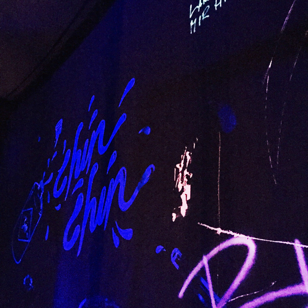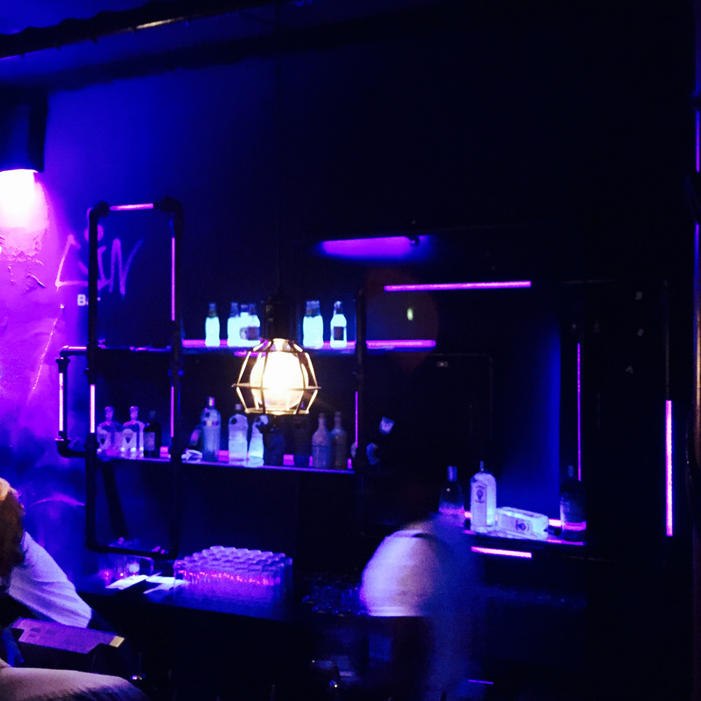 The beautiful new Audi A4 Quattro was presented on the ground level in the middle of a bright white spherical area. The contrast of the red car in the white dream-like sphere was amazing! The surreal journey was starting. We were handed a white Audi bracelet, told that this shall be our close companion and guide throughout the night. The elevator doors had white laser lights and a bright red interior, which took us to the top level of the adventure. As we got out of the lift and stepped into the room, it was indeed like stepping into the Matrix! My breath was taken away for a few seconds. We found ourselves inside of a large dark round room, with an intrinsic dome roof. It was made of many squares that got smaller towards the peak. On these squares were numbers and digits running down, like a code being generated in the Matrix! It felt like being in an ancient building in Rome, but directly in the heart of Frankfurt! DJ duo Andhim were situated in the middle, surrounded by a large bar area. The floor had computer motherboard-like marks, which were glowing with interchanging white and red lights. On the outer edges of the room, there were futurist virtual reality stations, waiting to take the VIP guests on an Audi tour in another galaxy. On our way to the bathroom we stumbled into a secret room with black light activated art on the walls. There was a bar with a huge variety of gins and tonics. Apparently this was the infamous gin room offering its many different delights.