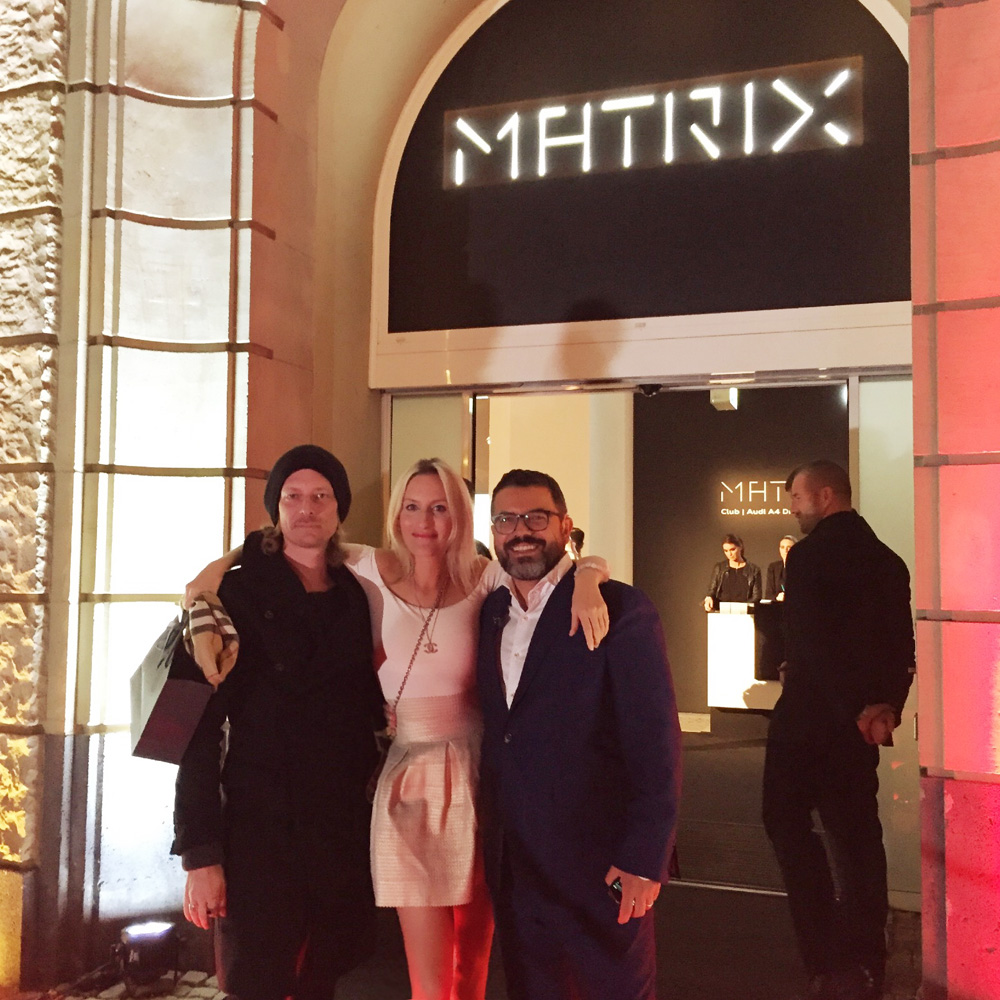 As the hours passed, we had to rush to the next event, which was the pre opening of the Matrix Pop Up Club. I didn’t know what to expect but was very excited to see the venue, because Madjid Djamegari was posting little teaser bits on Facebook during the week and the photos looked fantastic! The Matrix concept was brought into life by the Gibson Club and Audi – two brands that are definitely in the lead with trends and innovation. When our car dropped us off at the pop up location at Ludwig-Erhard-Anlage, we couldn’t help but get excited about the view. The entire building facade was glowing a bright crimson red! The front lawn was decorated with a hot red Audi R8 to match. It looked like we arrived at Dracula’s winter palace. As we walked down the red carpet, we were greeted with open arms by a smiling and very happy Madjid, along with Markus and other men in black. We had a nice chat outside and the gentlemen welcomed us into their special event.