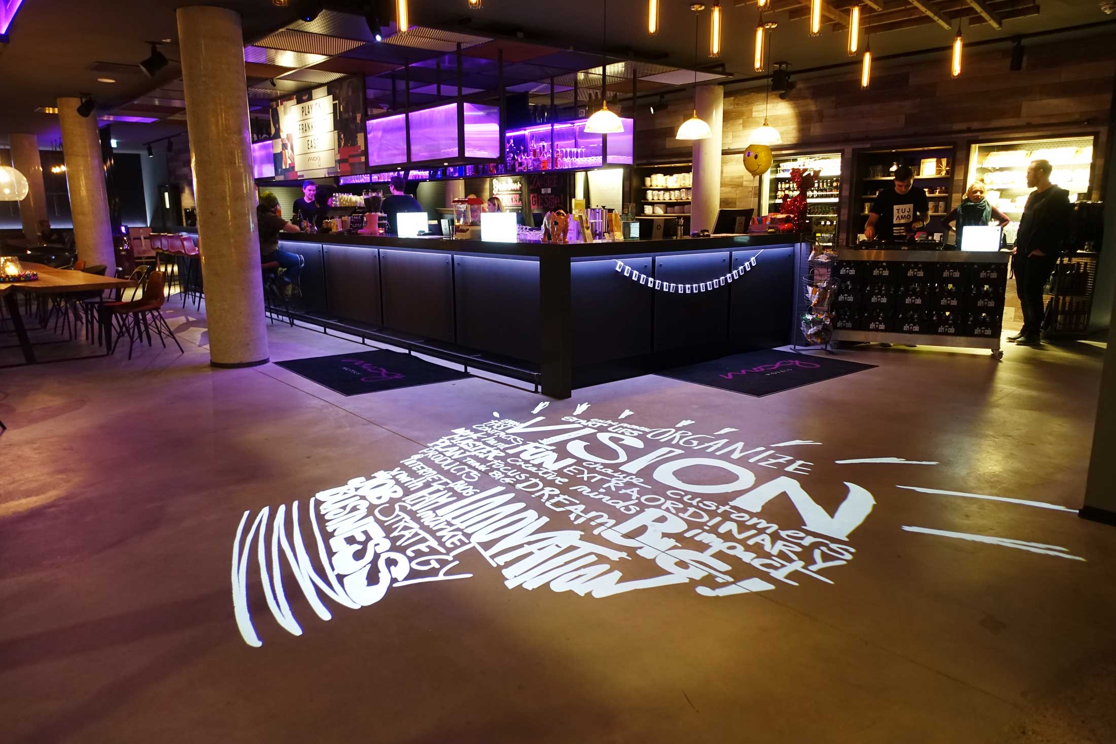 All around the bar area were sweets and delicious candies that one could pack in a bag and take to go. So of course I was hanging around the candy area most of the night. I think that no matter how old we become, that part will never leave our heart and soul. It was getting very late but nobody wanted to leave. The event was going strong and everyone was having the time of their lives. I simply adore Frankfurt – my small cosmopolitan city with a big attitude – and once again I saw how the Frankfurters love to party. The bar area at the Moxy Frankfurt East is an ideal place to have after-works drinks, even if one is not sleeping at the hotel. It’s located on the Hanauer Landstraße, which is the creative and artistic part of the city, perfect for having some after work fun.