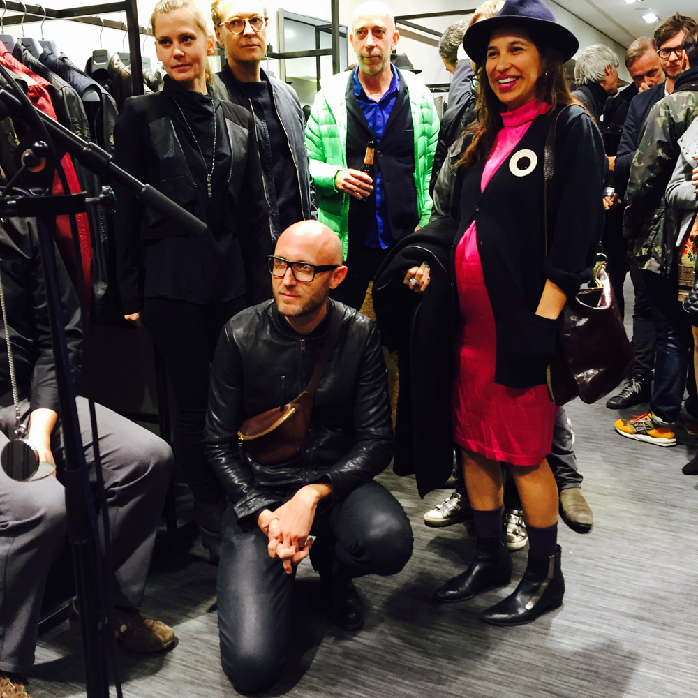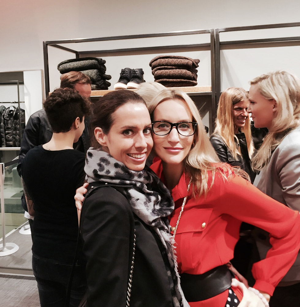 I met the girls a bit earlier for a drink on the Fressgass and then we walked together to the opening. As we arrived, we were greeted by the smiling Frank Kuhlmann, of the Kuhlmann-Consulting-Group, which was in charge of organized this event. The girls grabbed a glass of champagne and I reached out for the boring sparkling water. That’s what you get when doing detox. Water, water and more “delicious” water. Not. But at least my liver, kidneys and skin love me for it. We managed to slip into a tiny niche, because the store was so full! It was incredible because it felt like the entire European fashion society was there! Of course the who’s who of Frankfurt was definitely there. Along with some new and very attractive faces. I believe that twice as many people came than were actually invited to this event – which is always a sign of a good party!
