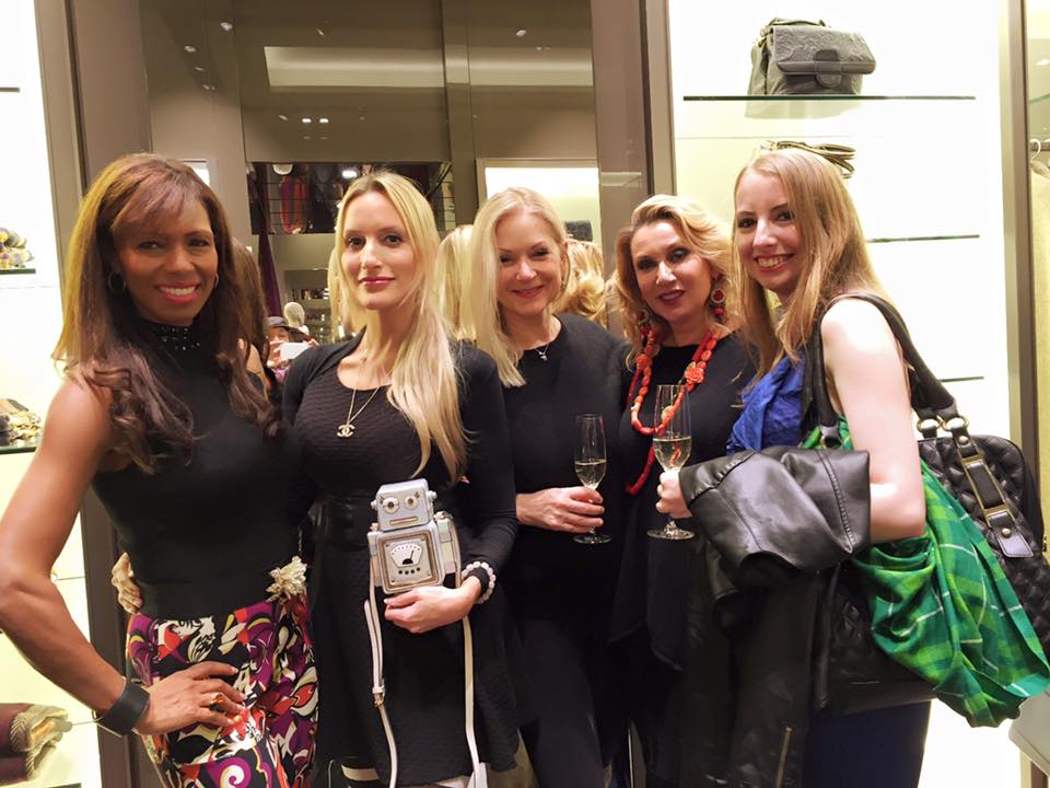 Speaking of playful, I bought a shiny bag in a shape of a robot a few days ago. I named the bag Robotica, and of course, brought her to the opening with me. Let me tell you, Robotica was the star of the show, together with the beautiful wool Etro paisley-printed scarves. Everyone wanted to touch her and make a photo with her. Who would have thought that a bag could have so many lovers? After trying on half of the store, the girls persuaded me to go upstairs and dance for a bit. There was a gorgeous woman DJane rocking behind the decks. She played a nice combination of light and deep house. Not only did Etro bring us beautiful designs that evening, but made everyone sway to the magical sound and flirt over a nice chilled drink. There were a few guys making eye contact with us, but that evening I was only interested in fashion-love!