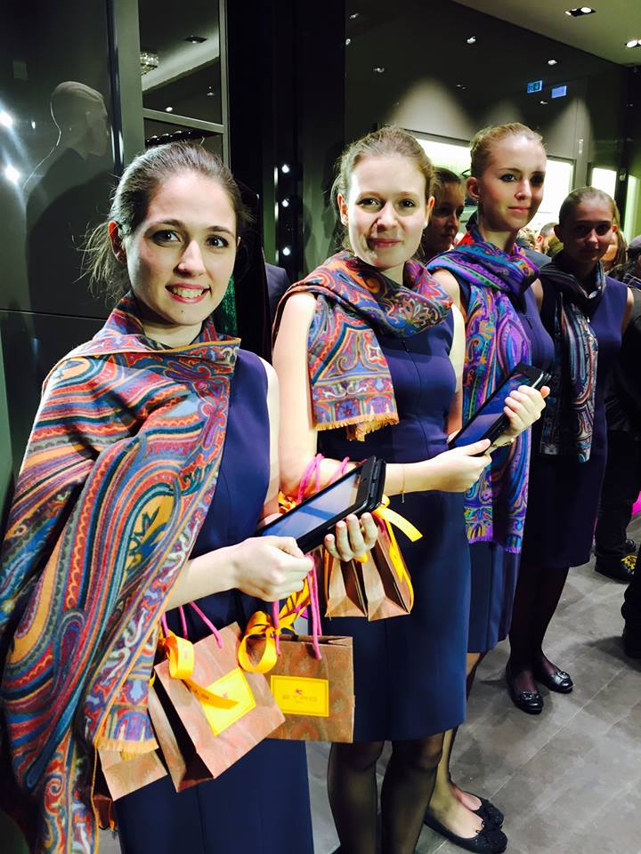 A few weeks ago a square envelope arrived at my home. I took it out of the mailbox and knew from the quality of the envelope and thickness of the card inside that this is an invitation to a cool fashion event. When I opened up the envelope, the first thing that caught my eye was the colorful paisley print. Without thinking twice, I knew that this could only be the invitation to the fabulous opening party of the Etro store. Indeed I was right. This unique Etro corporate identity cannot be mistaken with any other brands, and a designer eye can see the details right away. Since I live in the neighborhood, I have been scooping the store since it arrived in our little city with a big attitude.