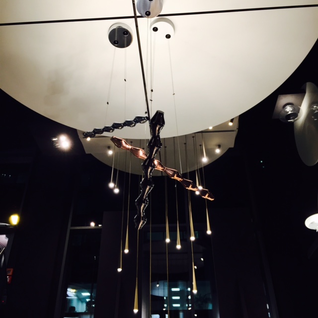 They both welcomed their guests into their brand new 2-floor showroom, with a warm smile on their faces. One could see the pride and honor in their wonderful accomplishment. I’m a big fan of futuristic light design, but what caught my eye right away was Franziska’s beautiful red dress! No wonder Mr. Grau creates amazing pieces, with such a bright and wonderful wife by his side! It was the first time that I met the Grau-power-couple, and I have to say that I was positively impressed by their friendliness, warmth and creativity.