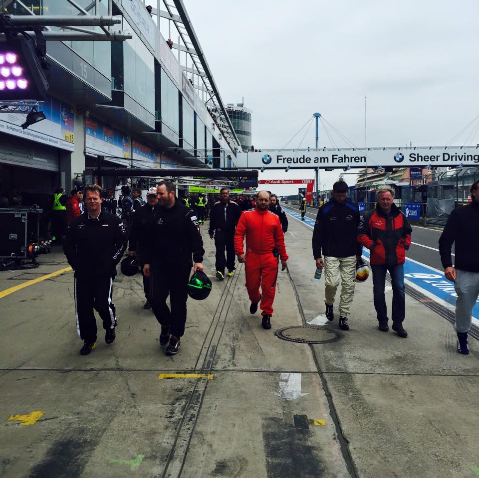 The 24 hours ended and Team Falken came in at 3rd place! That was a nice progress from last year, when they finished at 4th place. Everyone in the pit box was cheering and screaming! I have never seen such happy men before in my life! Some threw themselves on the floor and started kissing the used tires, the rest were picking each other up on the shoulders and ran around like wild little children. I ran to the front of the pit lane to make a live video of the drivers celebrating. Amazing results Team Falken! Also amazing for me that I won the bet with my friends. It was a very exciting weekend, which I shall not forget for a long time. I congratulated the Falken Director for their victory and all the drivers for an amazing race. The black Mercedes picked me up and drove me back to my little cosmopolitan city with a big attitude.