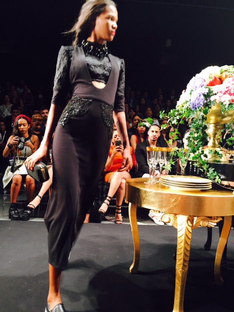 Last but not least was the Moisés Quesada show. It was an interesting concept because the entire length of the runway was filled with glass tables, vases, flowers, cutlery, dishes, flutes and other interesting home accessories. The setup allowed the models to walk around the entire runway. The collection was small but tight. Less is more – I always say rather a smaller collection but with killer pieces! And that’s what Quesada did. He played a lot with black, white and red this season. The designs were form fitting, very feminine and some fully see-through. The models looked like live man-eaters, and it felt like being in the middle of a secret vampire meeting. His Pièce de résistance was a long white wedding dress that came out at the very end. What a fitting and innocent ending to a dark and intriguing tale! The vampires left the room, the lights came on and the show was over. My jet lag was not loosening its tight grip on me. In fact, it was possessing me from the inside out. While everyone made their way to the loud and lavish after-show party, I only had dirty thoughts of my skin caressing the cold crisp bed sheets. Besides, tomorrow was the big day! The last day of the Dominicana Moda, and the evening of Jean Paul Gaultier’s long-awaited fashion show! I wanted to look well rested and fabulous for his amazing event! I bid my team farewell and disappeared into the gold-mirrored elevator.