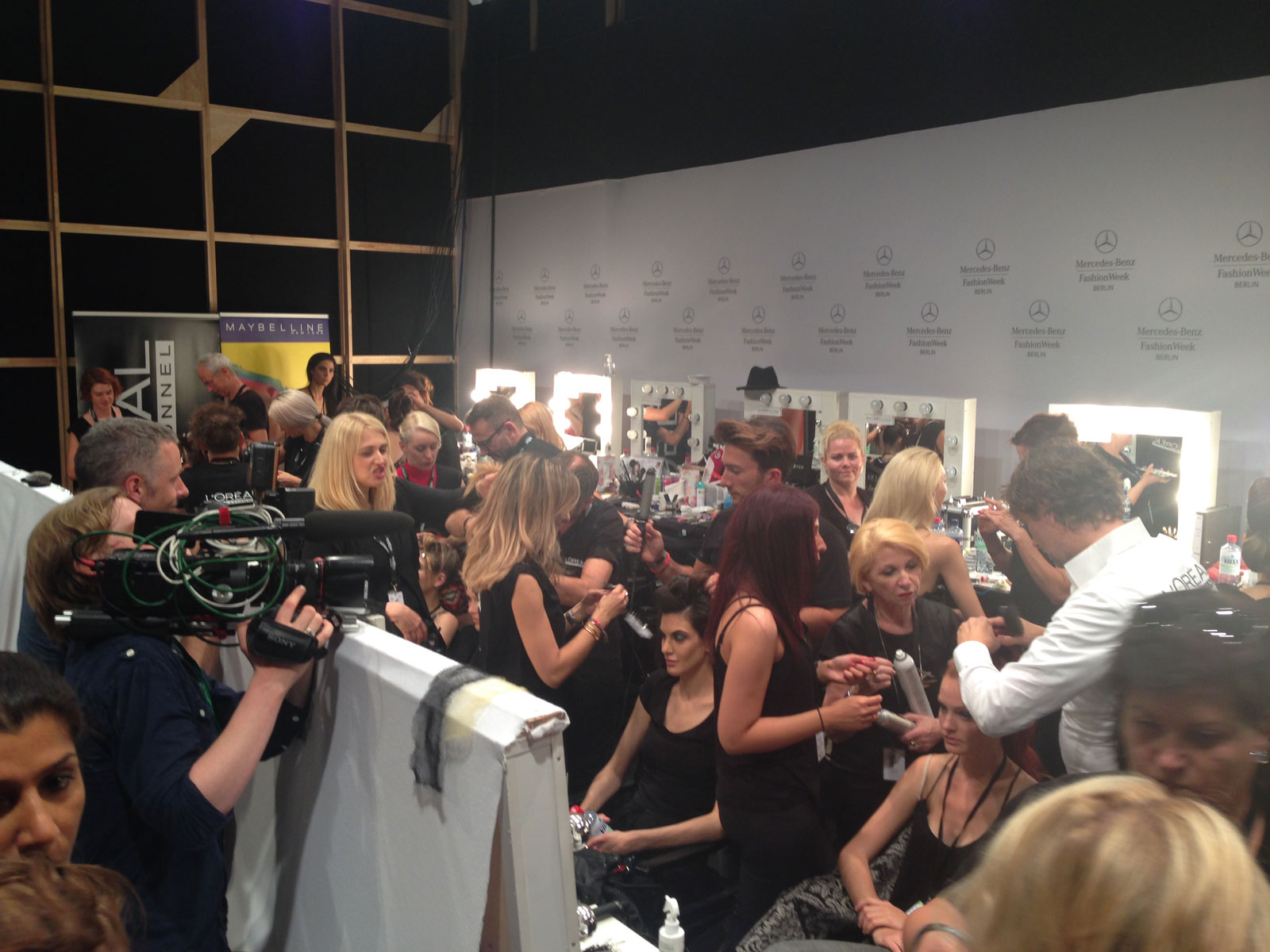 Luckily we managed to go back quickly to the Mercedes Lounge for a refill of the cold champagne before the backstage tour and the Guido Maria Kretschmer show, because the drama there outdid the previous one! We arrived at the front row, and a lady seated us in the center with the best view for the show. There was a Kretschmer Barbie on each seat for the guests to take, and a naughty man beside me said that the doll had no panties on. Dan and his friend Stan were excited too soon about the hot seats we got, because a moment after, a square-built man came up to them and said they had to leave because the seats were reserved for his client. Dan and Stan did not move anywhere. A few minutes later the client arrived, who happened to be Verona Pooth, and said they have her seats. Stan waved his hand in front of his face in an exaggerated “No” gesture. I could see that Ms. Pooth was about to express her own gesture, and before the cameras would rush in front of our Frankfurt faces, I pulled Dan and Stan up from the seats, and she shot me an appreciative friendly glance. Another accident avoided! Of course both took the Barbies with them, waving the naked plastic oysters in that direction as they were leaving! The funny thing was that our original seats were almost right across, also in the front row. The Kretschmer show was full of energy and elegance. I especially liked the last few dresses that had a glamorous rock feeling to them, which I would definitely wear for a special occasion like a Guns n’ Roses reunion concert and backstage party. Thank you Mr. Kretschmer for a wonderful collection and show!