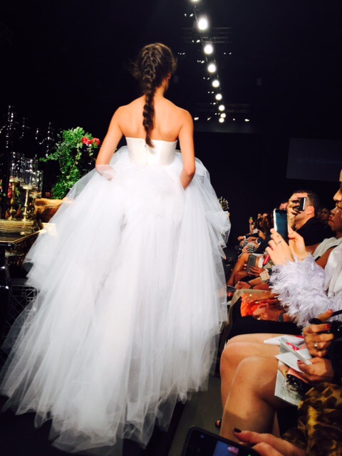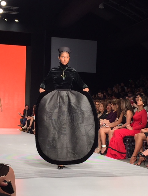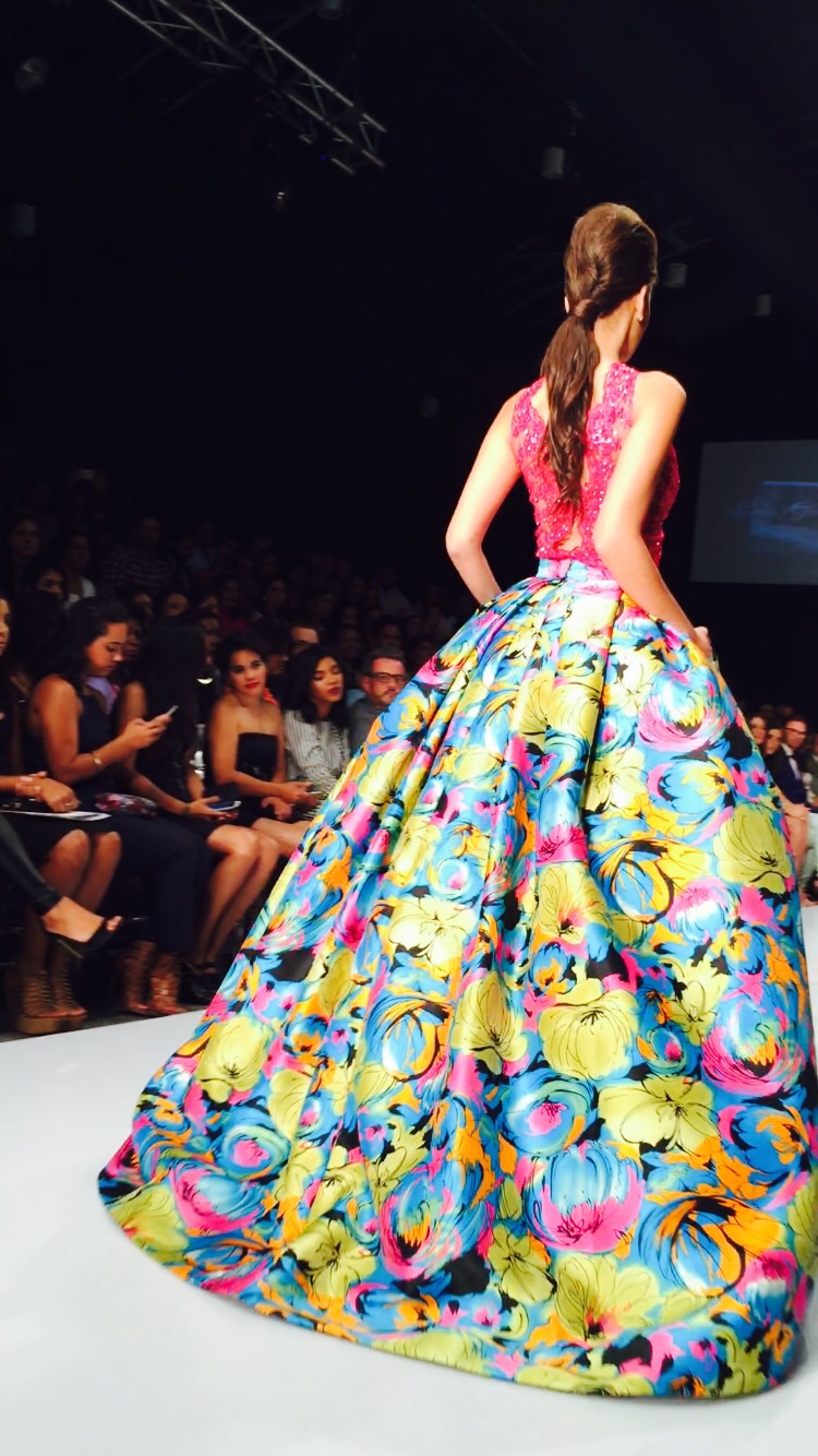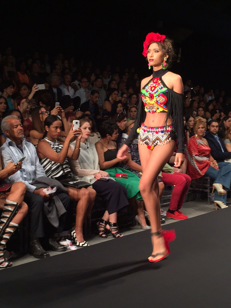 The people were lining up and gathering around from all directions in front of the infamous Garden Tent – or otherwise known as the “Salón de Desfiles – Oscar de la Renta”. The women were dressed in tight, short dresses and high heels. I was pleased to see how incredible feminine they all looked. The difference to the European fashion and women was very obvious. The commotion was slowly starting and some women were pushing everyone from behind, desperately wanting to get in. I stayed cool, holding tightly onto my front row ticket. Finally the doors opened and everyone was excited to see the Azar Y Alvarez show! I didn’t know what to expect. I purposely did not search the designers online ahead of time, so that I can be pleasantly surprised or shocked with what I see on the runway! The house beat started to vibrate the entire tent and the first model came out.
