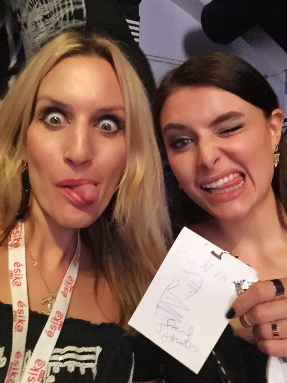 I asked him what he finds special about this event and he said the beautiful Dominican people and the amazing vibe. Everyone is so happy here. He said that the vibrant colors here are very inspirational to him. He also spoke of his charity work with the hospitals and helping fight racism. We chatted a bit and made a few cute photos. Then my absolute highlife of the day happened. I asked Mr. Gaultier to autograph my phone cover and he said, “With pleasure, but I have a better idea Galia!” Then in the middle of the stage with all of the people swarming around us, he took the time and drew a nice sketch for me directly on my phone cover! I was so overwhelmed by his gesture and patience. He saw in my eyes that it made me so happy, and to top it off, he gave me a hug and said, “Enchanté Galia!”, I felt like a star-struck teenager. Jens Prewo was interviewing Mr. Gaultier for RTL Exklusiv – a popular German celebrity TV show – and after that he interviewed me as well about my opinion of the event, JPG and the entire atmosphere. I haven’t been this excited in years!