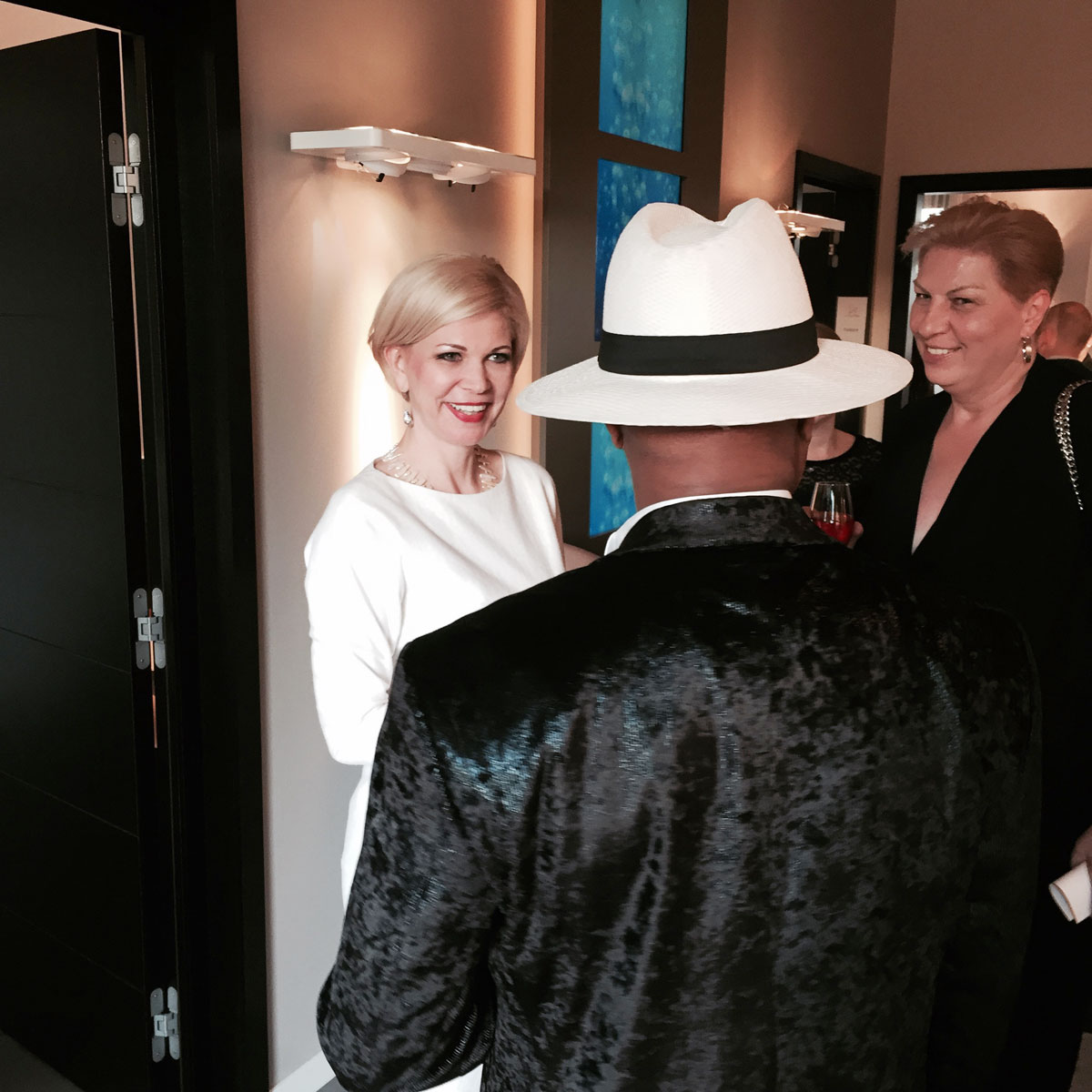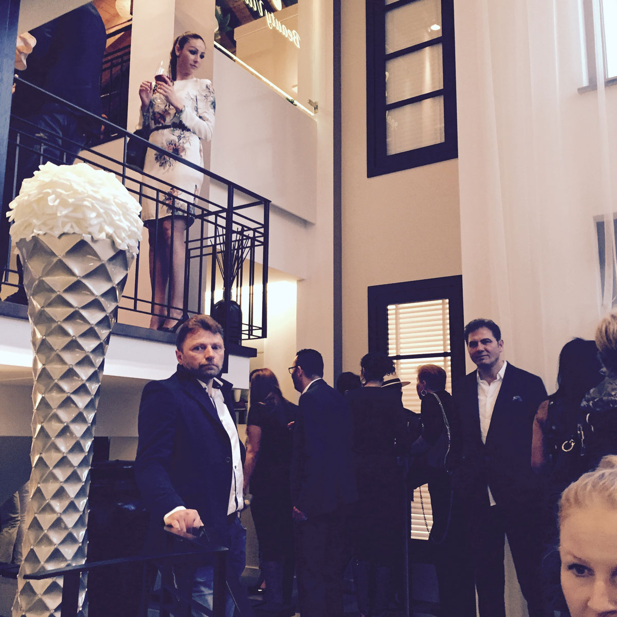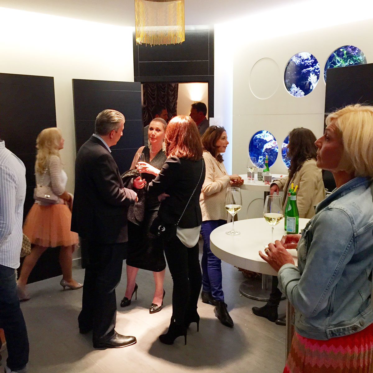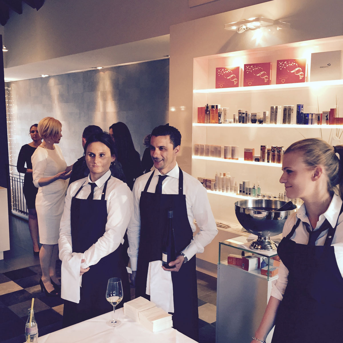 All the guests were very curious about each room in the Beauty Village and you could see them exploring the entire premises. Ljudmila was in her perfect element, explaining the treatments and arousing even more curiosity in her future clients. Everyone was especially fascinated by the skin diagnostic device, which maps out the entire face and skin, and shows exactly what has to be treated and improved. At one point of the evening, Ioana came rushing to find me and brought us back into the lounge area for the evening highlight. Jimmie Wilson and Ghanem Ghezal were about to sing a duet, which nobody wanted to miss. The two men brought passion onto the dance floor and people started to move. The champagne was flowing and the music was mesmerizing!