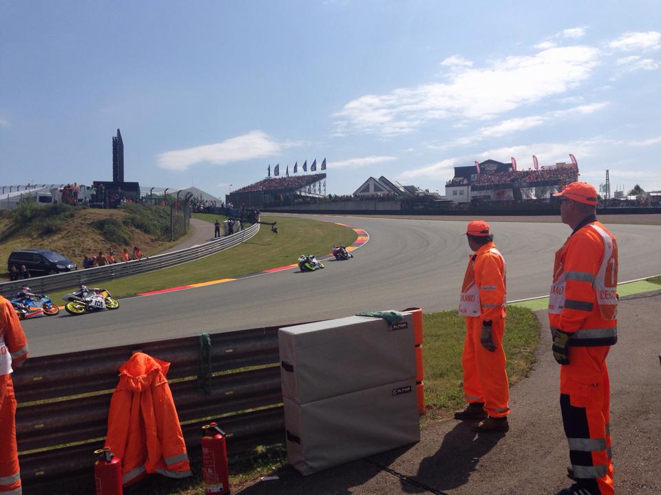 When we arrived at the Sachsenring, we were greeted by a Bridgestone rep and given an Access All Areas pass. Apparently this pass was worth gold at the MotoGP, because it meant access to the team garages and pit areas. We were taken on a tour of the various teams, starting with Ducati, and ending with Yamaha. There I met the infamous Bradley Smith of the Tech3 team, and he gave us some insider gossip about his growing success. I couldn’t help notice the girls running around in the background, doing jumping jacks to get his attention. Managers were running from left to right, protecting their riders like fresh Kobe beef from flies.