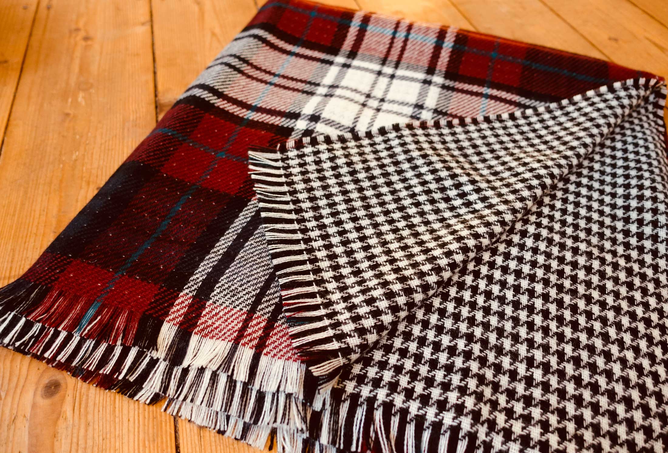 1 x gorgeous XL scarf that can be worn on two different sides. One side is tartan and the other is the famous black and white houndstooth pattern.